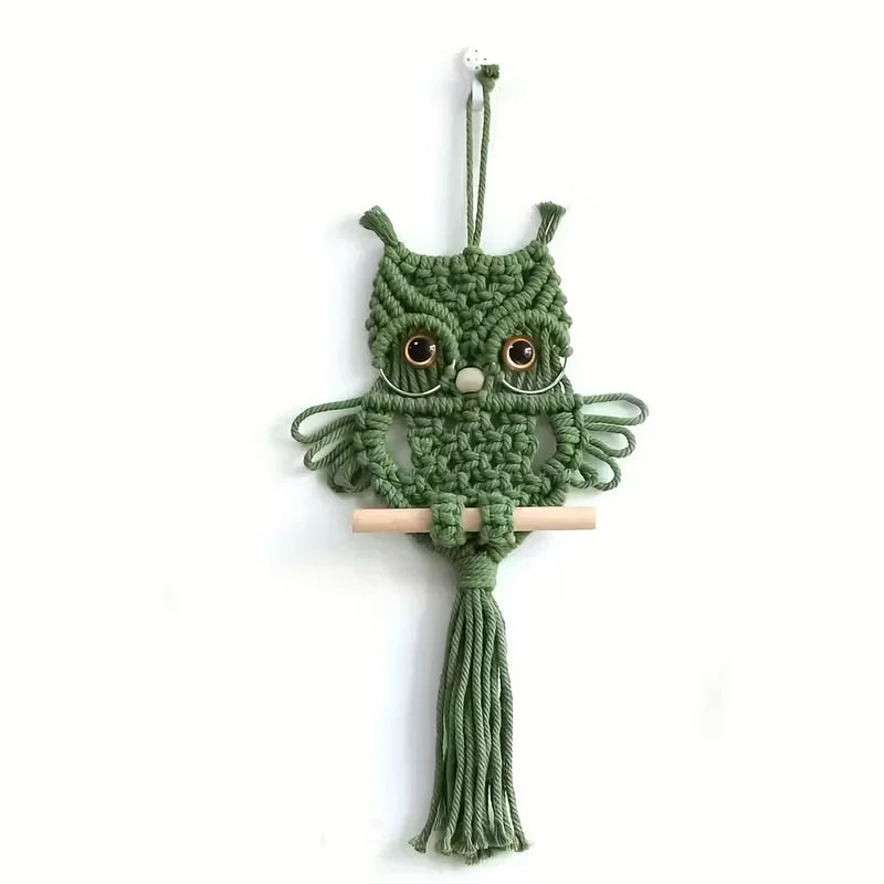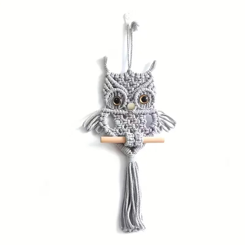 Dekoracja ścienna sowa makrama z bawełnianego sznurka