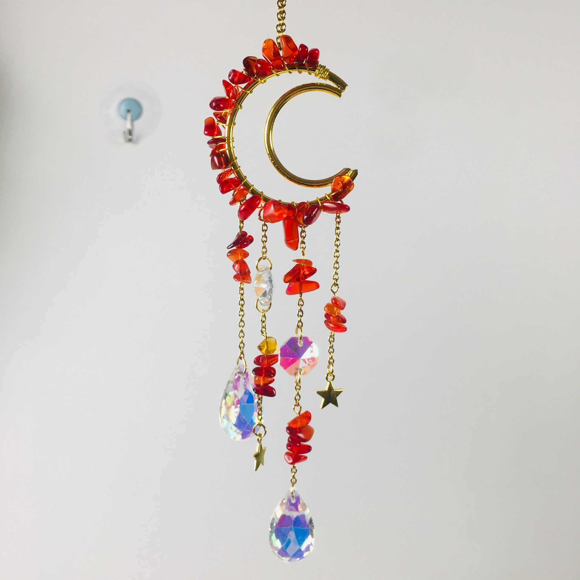 Dekoracyjna zawieszka w kształcie półksiężyca z kryształowymi elementami i złotymi detalami wprowadza do wnętrza subtelny blask i magiczny nastrój.