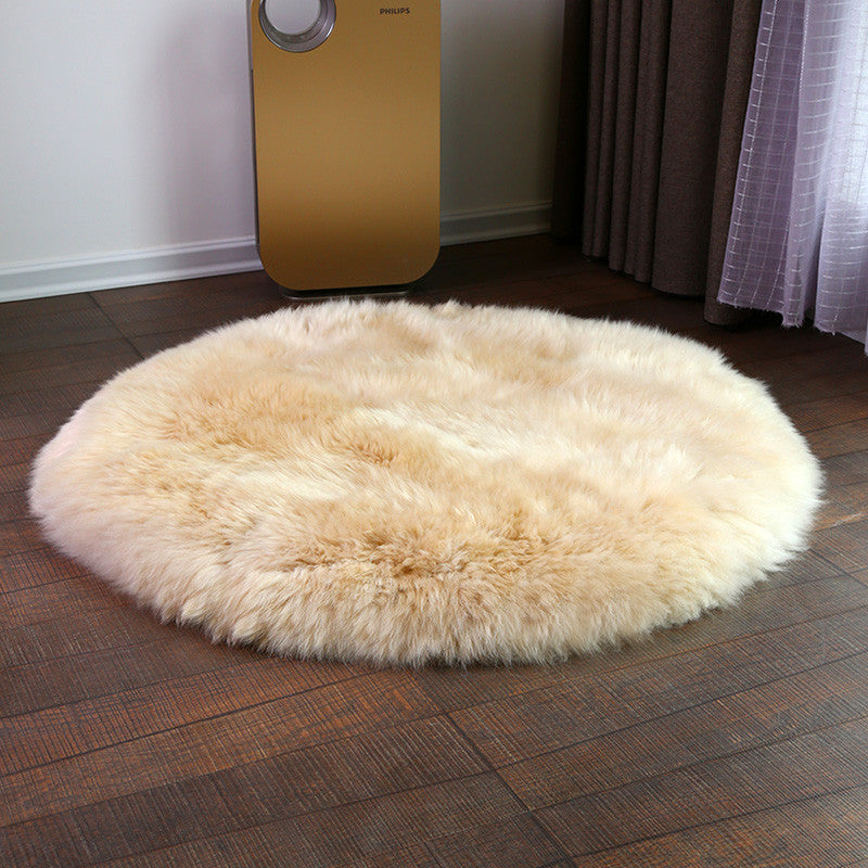 Okrągły dywan o puszystym runie tworzy przyjazny klimat w strefie wypoczynku. Dobrze wygląda przy fotelu i łóżku.